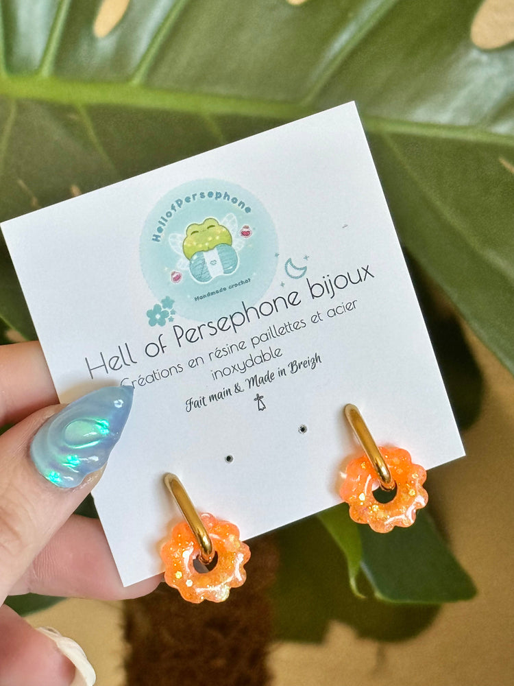 Boucles d'oreilles pendantes petite fleur (modèle unique)