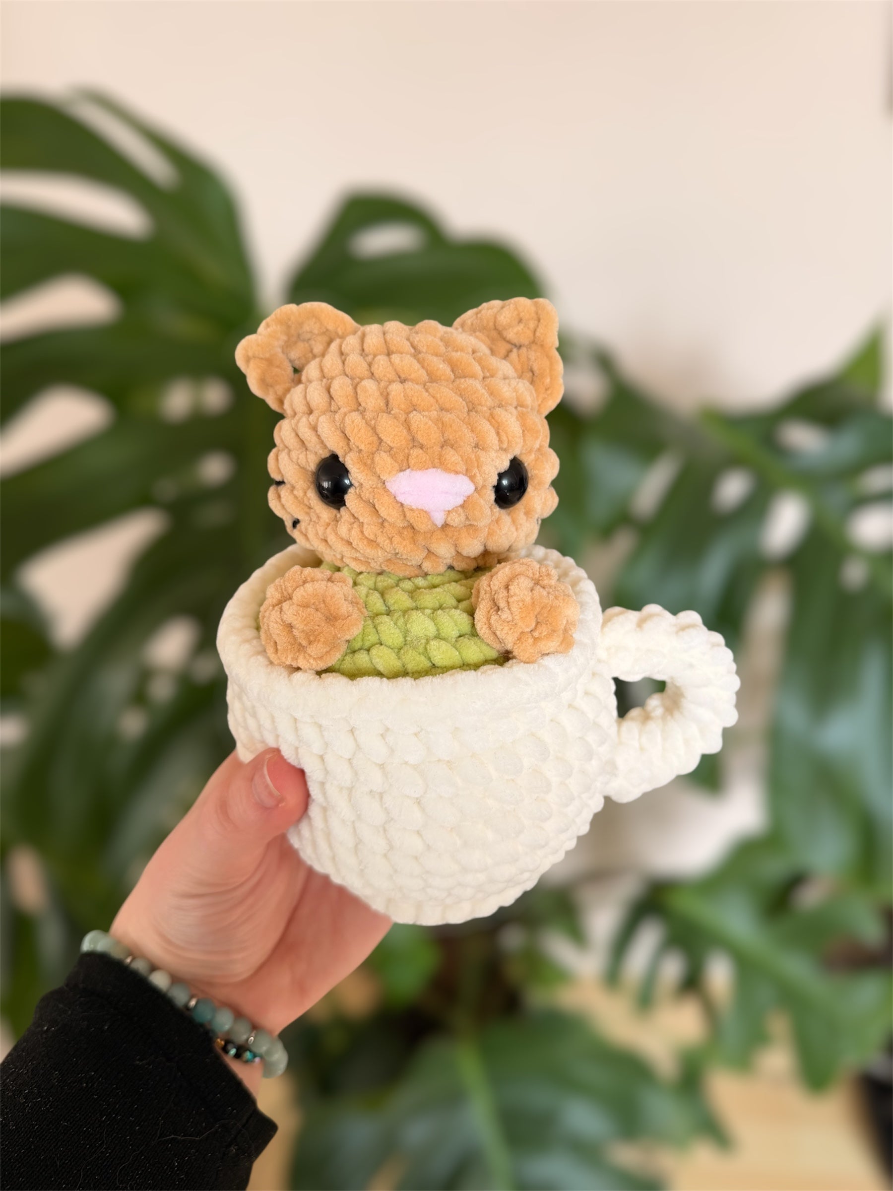 Ajoutez une touche de douceur à votre quotidien avec cette peluche chat cappuccino au crochet, réalisée entièrement à la main. 🧶