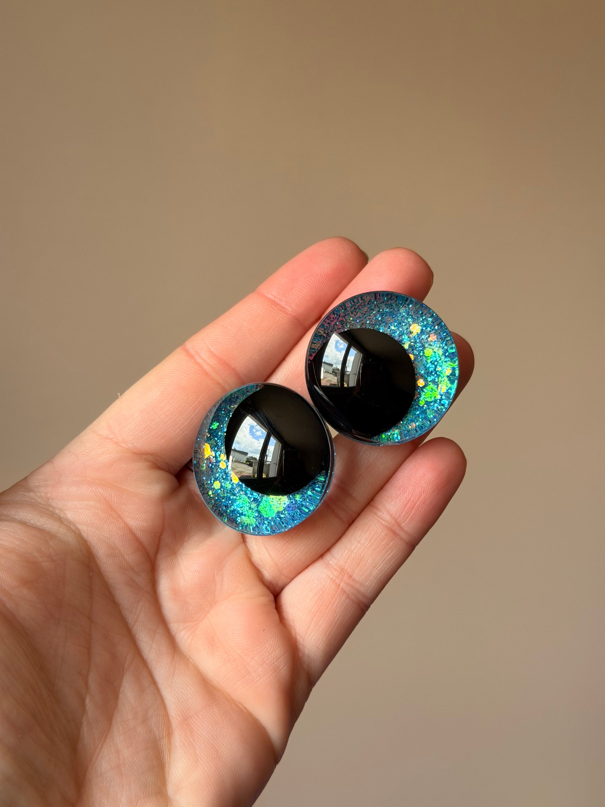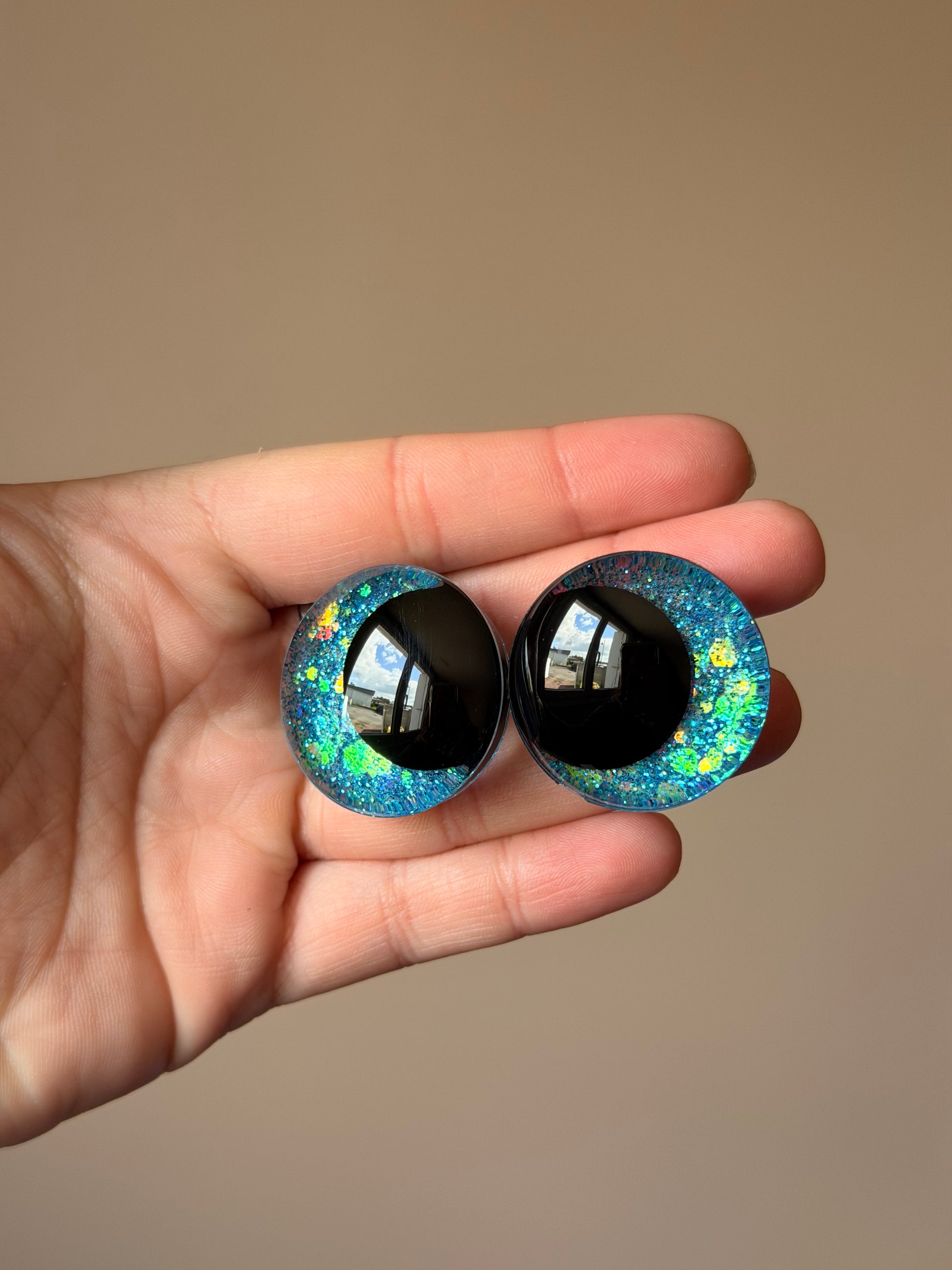 Yeux de sécurité (safety eyes) pour amigurumi et pour peluches au crochet — Lagon Azur ✨ Peints à la main avec paillettes et résine UV